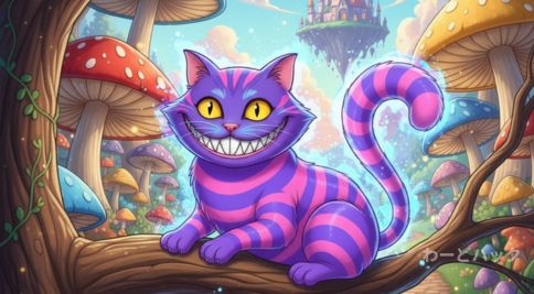 チェシャ猫:不思議な笑みを浮かべ、消えたり現れたりする謎めいた猫。助言のようで意味深な言葉を残します。
