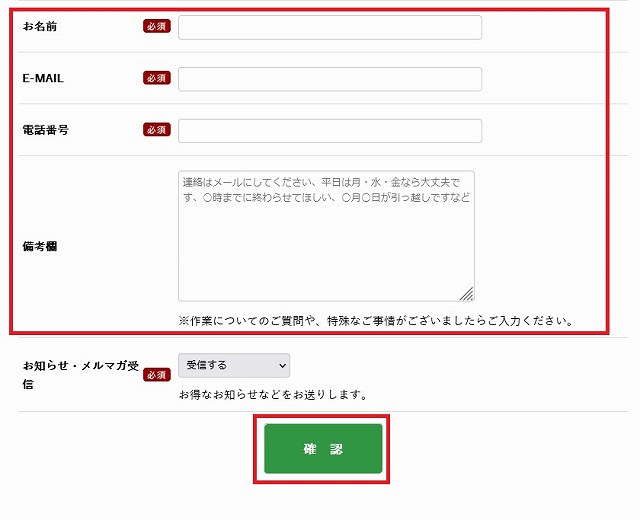 4. 次に、名前、メールアドレス、電話番号、備考(必要な場合)を入力したあと、「確認」ボタンを押すだけです。
